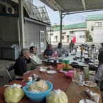 今回のメニューは、豚汁、焼きそば、焼肉、サンマなどです。すべての調理や設営は社員全員で協力して行いました。豚汁の味付け、脂の乗ったサンマが美味でした。